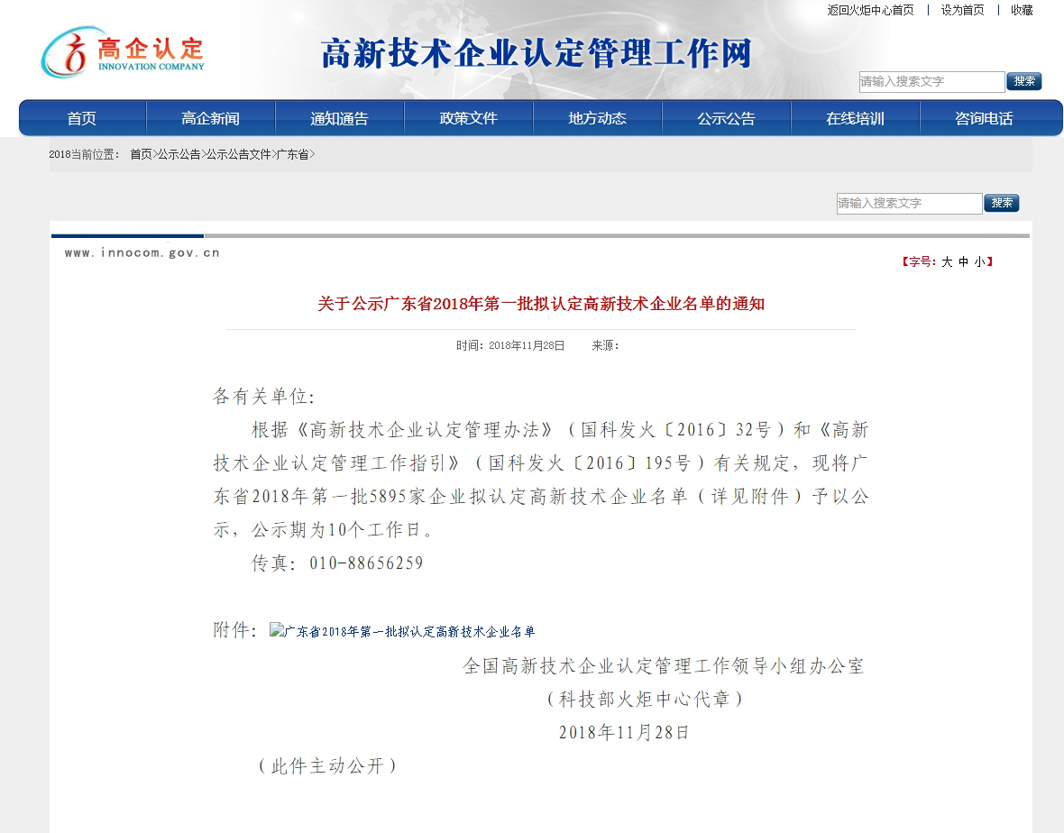 11月28日,科技部火炬中心公布了2018年廣東省批擬認(rèn)定高新技術(shù)企業(yè)名單,共2601家企業(yè)通過高新技術(shù)企業(yè)認(rèn)定,佛山市林創(chuàng)科技有限公司作為一家創(chuàng)新型企業(yè),在榜單中占據(jù)一席之地。